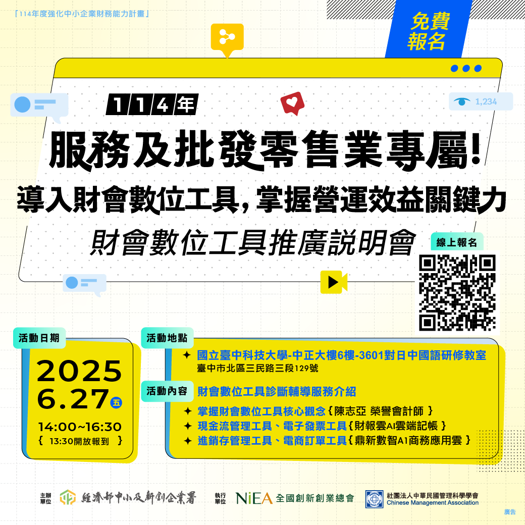 中小及新創企業署 版權所有 Copyright © 2024 SMALL AND MEDIUM ENTERPRISE AND STARTUP ADMINISTRATION MINISTRY OF ECONOMIC AFFAIR R.O.C. All Rights Reserved.